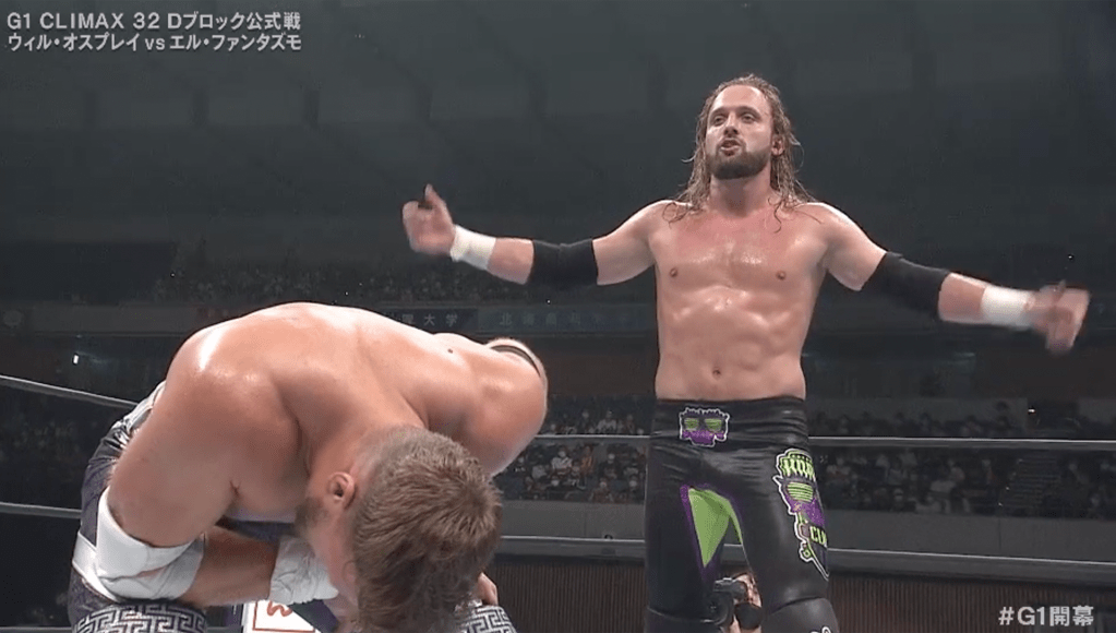 El Phantasmo taunts Will Ospreay during their G1 Climax 32 match on July 16 in Hokkaido. | New Japan Pro Wrestling image via njpwworld.com New Japan Pro Wrestling