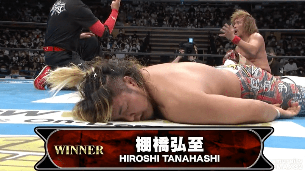 Hiroshi Tanahashi pins Zack Sabre Jr. during their main event in the G1 Climax 32. | New Japan Pro Wrestling image via njpwworld.com New Japan Pro Wrestling